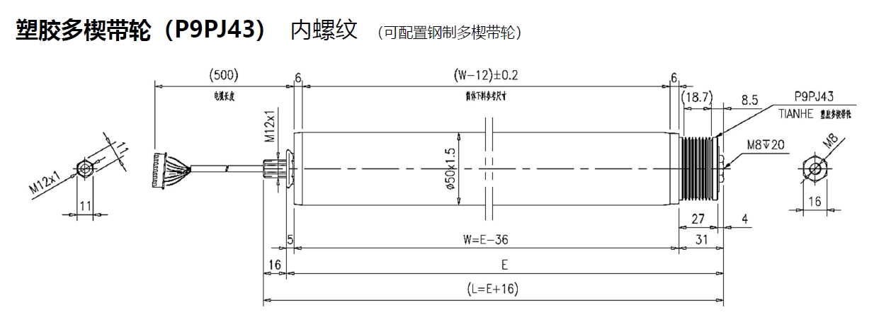 電動(dòng)輥筒 塑膠多楔帶輪(P9PJ43) 內螺紋 (可配置鋼制多楔帶輪)