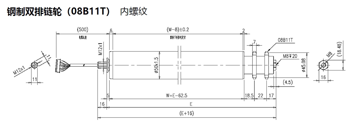 電動(dòng)輥筒 鋼制雙排鏈輪(08B11T) 內螺紋